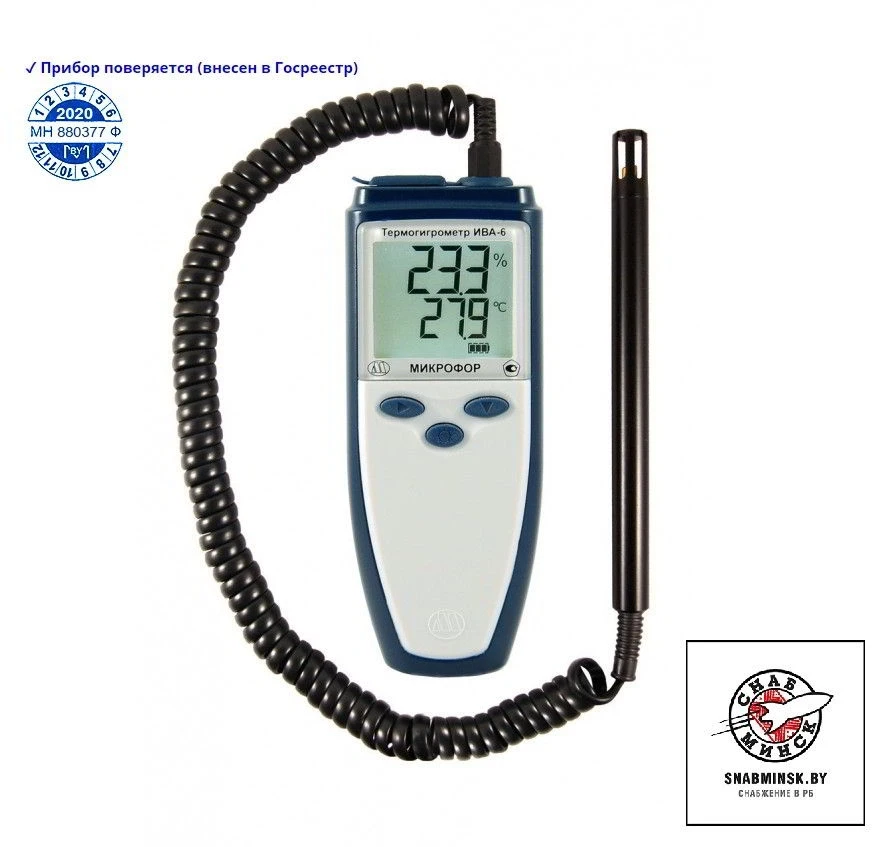 Термогигрометр ИВА-6 представляют собой автономный переносной прибор и предназначен для измерения относительной влажности, температуры и атмосферного давления (опционально) воздуха в жилых, складских и производственных помещениях, а также в свободной атмосфере.